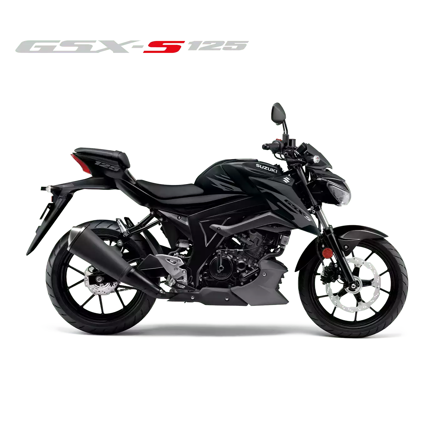 Ønsker du at din aller første motorsykkel skal være helt spesiell? Da bør du ta en titt på GSX-S125 som er et helt nytt medlem i den råkule streetfighter-serien til Suzuki. Nye GSX-S125 tar eierskap i kongetittelen i lettvektsklassen med klasseledende akselerasjon, rått dreiemoment, det beste vekt/effekt-forholdet, smidig håndtering og fantastisk drivstofføkonomi. Suzuki har lang erfaring som en av de viktigste byggerne av spennende streetfightere. Basen har vært den legendariske GSX-R-serien. De aggressive sportssyklene er blitt strippet ned og har fått høyere styre. Solide chassis og potente motorer med mye krefter i nedre deler av effektregisteret skaper sykler med svært underholdene karakter. Det startet med kruttønna GSX-S1000. Så kom potente GSX-S750. Og nå kompletteres serien med enestående GSX-S125! Med GSX-S125 får du det beste fra den revolusjonerende raceren GSX-R125, men i en mer gatevennlig innpakning med mer oppreist kjørestilling og høyre styre. Det gir bedre oversikt i trafikken og en mer avslappet kjøreposisjon. Motoren er en helt nyutviklet 1-sylindret væskekjølt firetakter fra Suzuki. Ingeniørene som står bak denne har hatt stor fokus på mye krefter i mellomregisteret, slik at du alltid har krefter når du gir gass. Men minst like viktig er den gode drivstofføkonomien som betyr svært lavt bensinforbruk. GSX-S125 har et spennende og moderne design med en stilig kåpe. Sjekk bare det tøffe LCD-displayet med utfyllende informasjon og de kule LED-lyktene i fronten som gir god opplysning av veien på mørke høstkvelder. Modellen egner seg like bra til gatekjøring som landeveiskjøring. Og den takker ikke nei dersom du inviterer med til noen runder på racerbanen. Den er en motorsykkel det er lett å bli glad i – uansett hva formålet med kjøringen er. Med den aller mest moderne teknikken, høy kvalitet og finish, et kult design og lekre dekaler er det ikke rart du kjører GSX-S125 med stolthet! ### Høydepunkter: * Lekkert design som sine større familiemedlemmer i GSX-S-klanen. * Lett og kompakt chassis gir svært gode egenskaper under alle kjøreforhold. * Aluminiumsfelger bidrar til å holde vekten nede. * Klassens laveste salhøyde gir god kontroll – spesielt under bykjøring. * Lekker multifunksjonell LCD-instrumentering. * LED hovedlys foran som vekker oppsikt. * Lettvekts-ABS – aller siste versjon fra Bosch som er markedets aller letteste og mest effektive