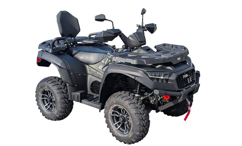 • Leveres med 12” aluminiumsfelger og kraftige 6-lags radialdekk, håndbeskyttere, store bagasjebærere, ryggstøtte, solid støtfanger foran, beskyttelsesplate under, hengerkule bak og kraftig vinsj foran.