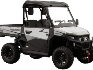 En virkelig arbeidshest med et stort plan som også kan tippes! Solide sidedører beskytter mot vær og vind. Den har 2500 lbs vinsj, servostyring, 12” lettmetallfelger, tilhengerfeste og sikkerhetsbelter.